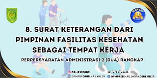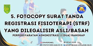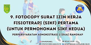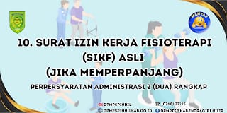 ARB INdonesia, INDRAGIRI HILIR – Berikut ini adalah 10 syarat yang wajib dilengkapi, bagi Anda yang ingin membuat Surat Izin Kerja Fisioterapi (SIFK) di Dinas Penanaman Modal dan PTSP Kabupaten Indragiri Hilir (DPMPSTP Inhil) yang beralamat di Jalan Hang Tuah Tembilahan.
