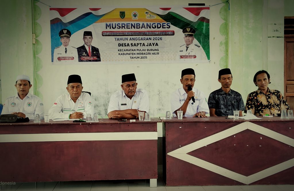 ARB INdonesia, INDRAGIRI HILIR – Pemerintah Desa Sapta Jaya, Kecamatan Pulau Burung menggelar Musyawarah Perencanaan Pembangunan Desa (Musrenbangdes) tahun anggaran 2026, Rabu (22/1/2025) di Gedung Serbaguna.