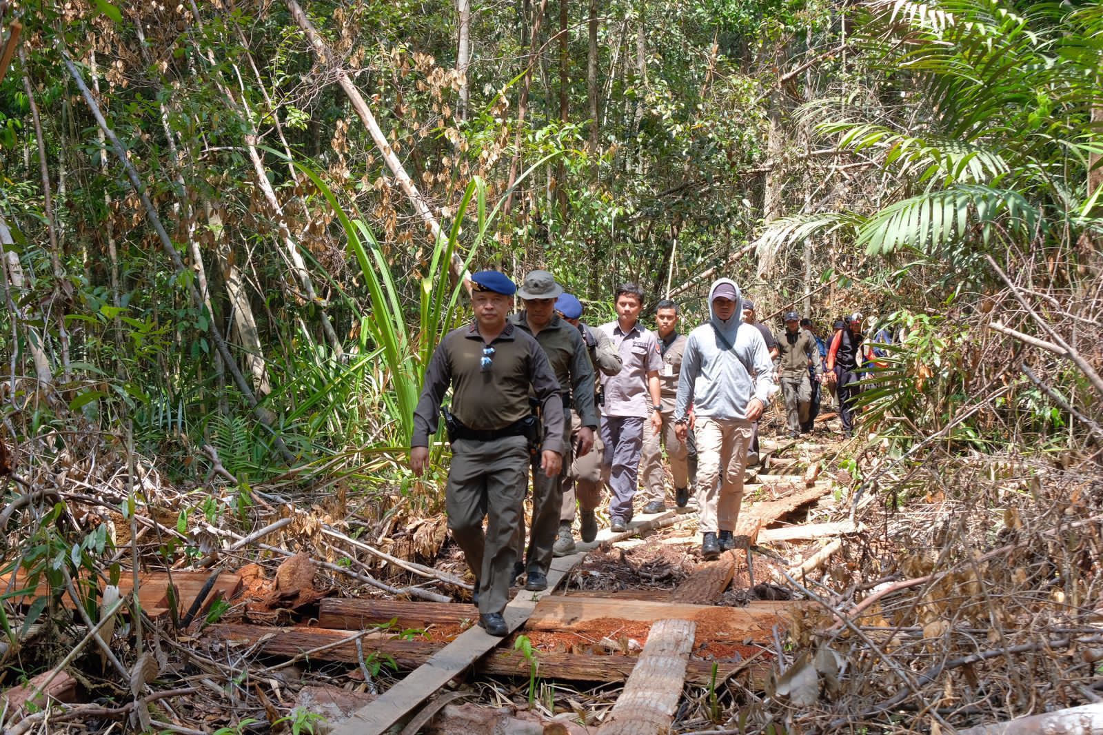 Kapolda Riau dengan berjalan kaki menyisir rel kayu tersebut, di mana kanan dan kirinya hutan belantara. Dalam perjalanan itu, Irjen Agung menemukan beberapa pohon yang sudah ditebang dan sisa ampas hasil olahan. Bahkan ada yang masih baru ditebang, yang kemungkinan ditinggalkan para pekerja ketika mengetahui kedatangan polisi.