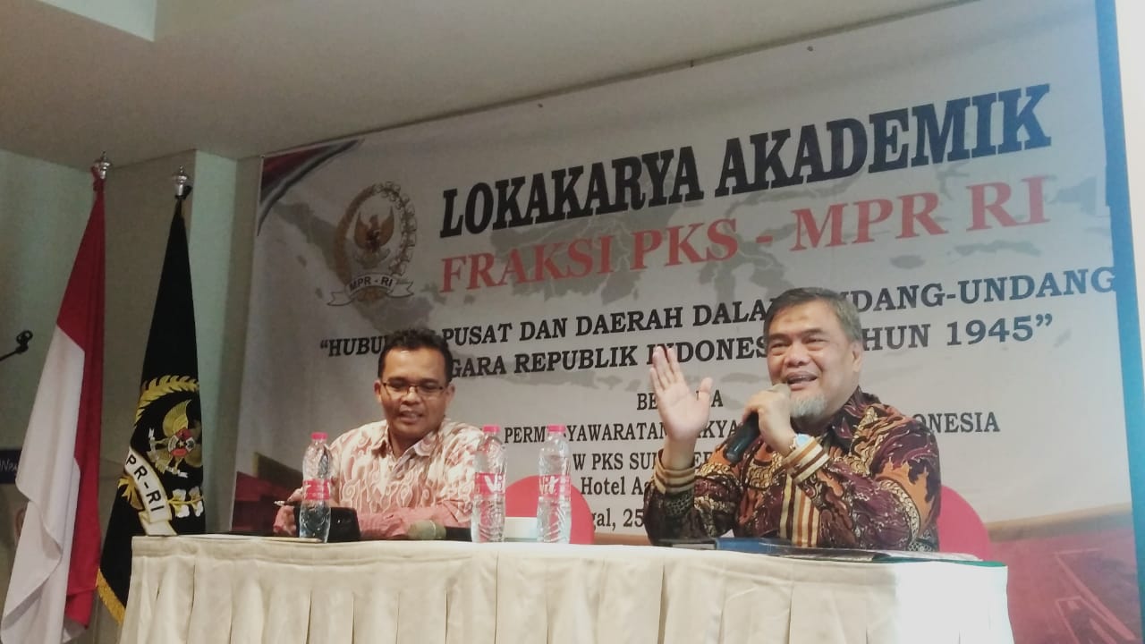 ARB INdonesia, PALEMBANG – Anggota DPR-RI Fraksi Partai Keadilan Sejahtera (PKS) Dr Ir H A Junaidi Auly, MM dalam kesempatan kegiatan lokakarya Akademik Anggota PKS menyampaikan terkait hubungan keuangan pemerintah pusat dan daerah (HKPD).