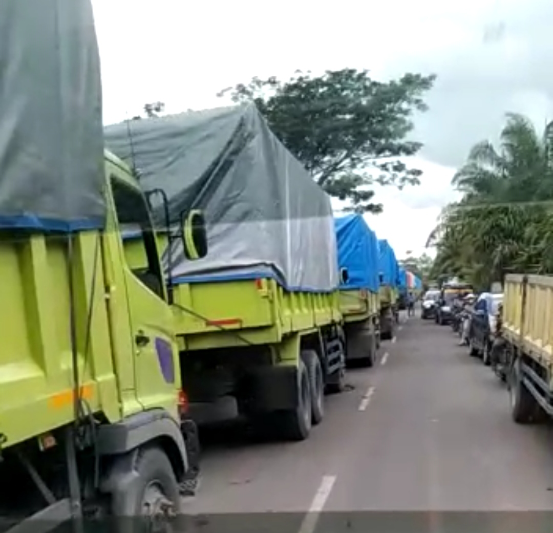 ARB INdonesia, INDRAGIRI HILIR – News. Kendaraan jenis Truk pengangkut barang yang diduga milik perusahaan batu bara yang berada di wilayah Desa Bayas Jaya Kecamatan Kempas, Kabupaten Indragiri Hilir (Inhil) membuat arus lalu lintas di jalan utama Rengat-Tembilahan mengalami kemacetan.