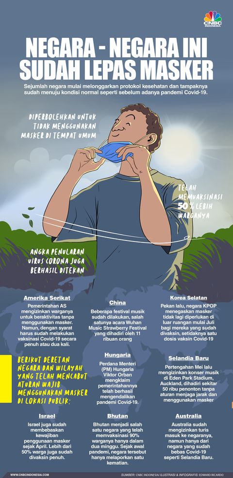 Berikut deretan negara dan wilayah yang telah mencabut aturan wajib menggunakan masker di lokasi publik.