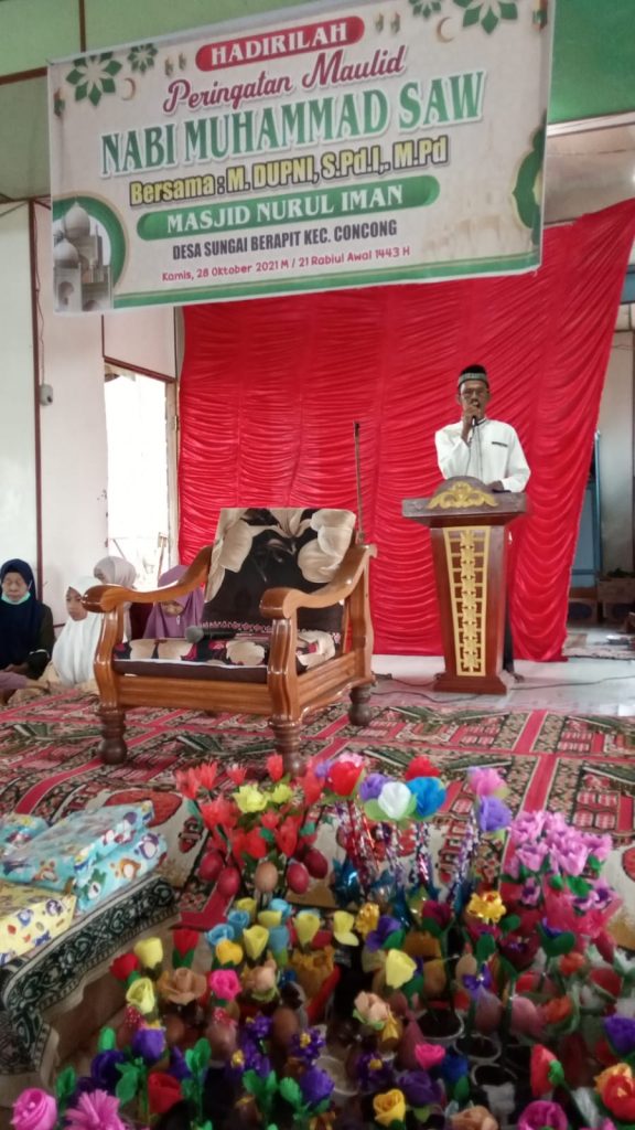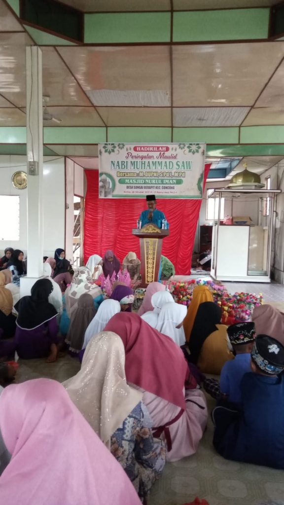 ARBIndonesia.com, INDRAGIRI HILIR – Pengurus Masjid Nurul Iman di Desa Sungai Berapit, Kecamatan Concong, Kabupaten Indragiri Hilir (Inhil) menyelenggarakan peringatan Maulid Nadi Muhammad SAW, Kamis (28/10/2021).