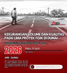 Kekurangan Volume dan Kualitas Lima Proyek Fisik di Dumai, Kerugian Negara Capai Rp208 Juta