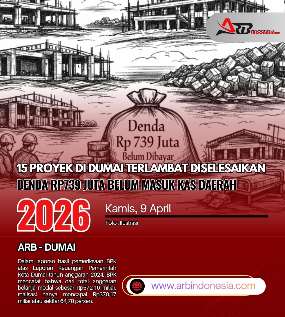 ARBindonesia.com, DUMAI— Badan Pemeriksa Keuangan (BPK) Perwakilan Provinsi Riau menemukan adanya keterlambatan penyelesaian 15 paket pekerjaan belanja modal di lingkungan Pemerintah Kota Dumai.