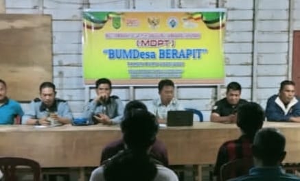 Tampak dihadiri Kepala Desa Sungai Berapit, M Ihsah, Fasilitator Bumdes, Fasilitator Masyarakat Pemberdayaan, Fasilitator Masyarakat Teknik, Ketua BPD, Ketua, sekretaris dan bendahara BUMDes, perangkat desa, rt rw dan tokoh masyarakat lainnya.