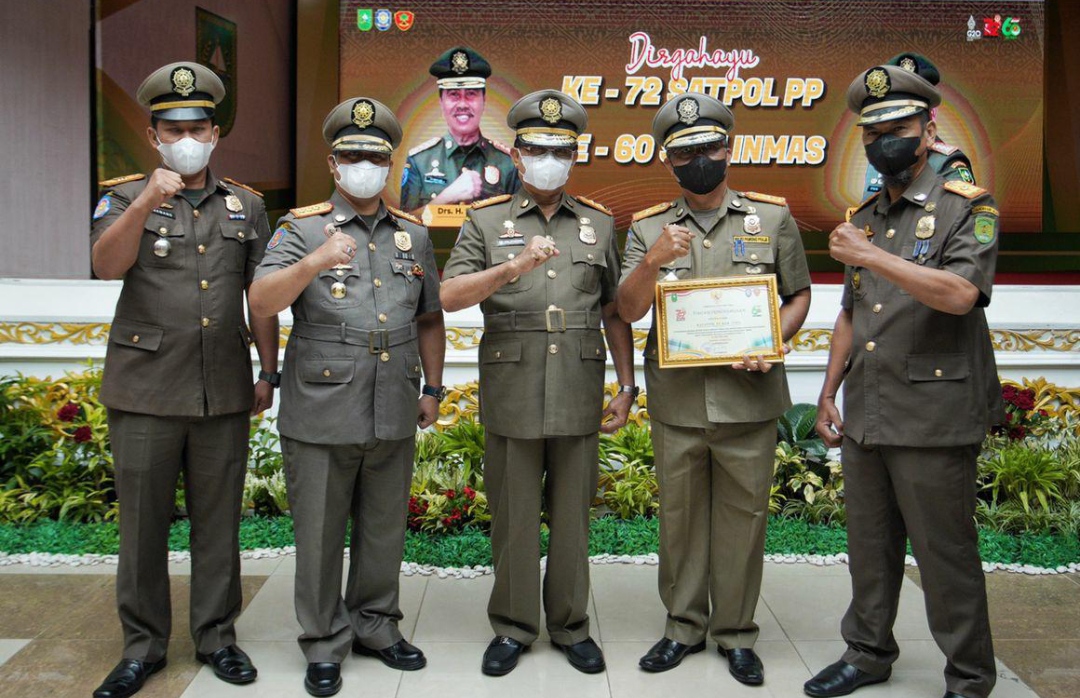 Piagam penghargaan itu sebagai apresiasi kepada Satpol PP Kabupaten/Kota yang telah melaksanakan penegakan peraturan Daerah, dan penyelenggaraan ketentraman dan ketertiban umum selama pandemi Covid-19.