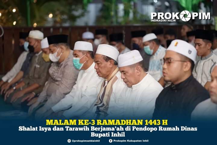 ARB INdonesia, INDRAGIRI HILIR – Senin malam selasa (04/04/2022) bertepatan dengan malam ke-3 Ramadhan 1443 H, Bupati Inhil Drs. H. M. Wardan MP beserta jajaran melaksanakan Sholat Isya dan Tarawih di Pendopo Rumah Dinas (Rumdis) Bupati, Jln. Kesehatan Tembilahan Kota.