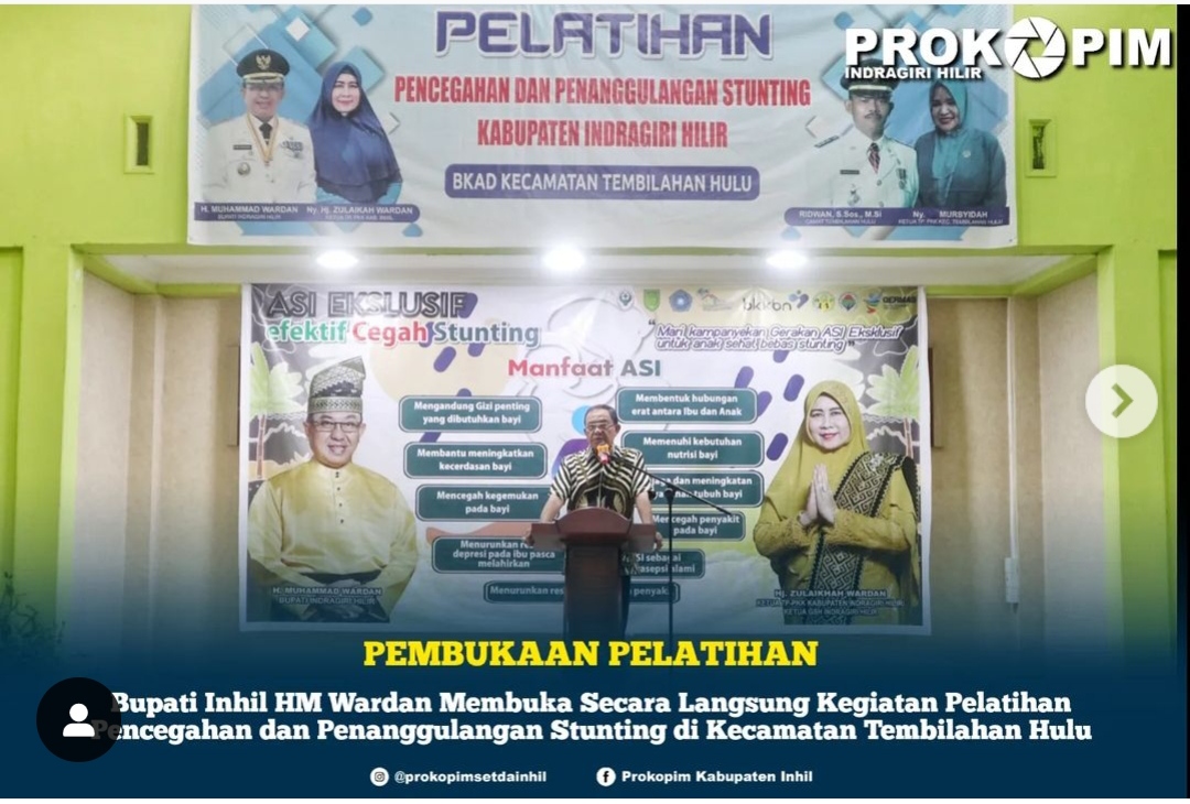 ARB INdonesia, INDRAGIRI HILIR – Bupati Indragiri Hilir (Inhil) Drs. HM. Wardan, MP kembali membuka secara langsung Pelatihan Pencegahan dan Penanggulangan Stunting Kabupaten Inhil di Kecamatan Tembilahan Hulu, Senin (29/08/2022) sore.