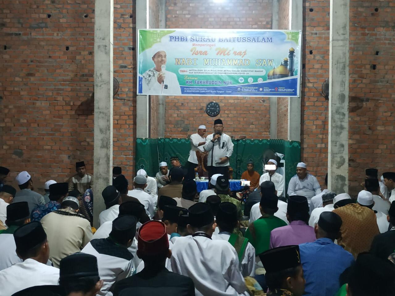 Pada pelaksanaan Isra Miraj Nabi Muhammad SAW dan peresmian pelaksanaan sholat 5 waktu di Surau Baitussalam diisi dengan tausiah oleh KH Fakhruddin Nur yang merupkan Guru Pondok Pesantren Al Baqiyatus Sholihat Kuala Tungkal, Jambi.