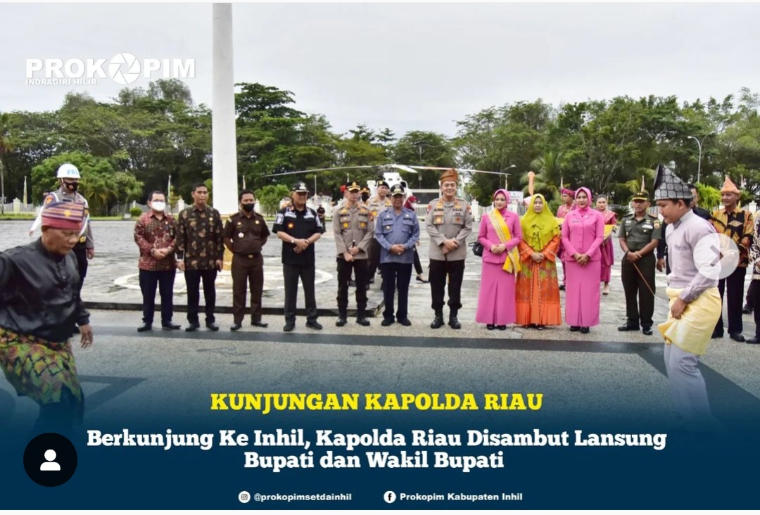 ARB INdonesia, INDRAGIRI HILIR – Bupati Indragiri Hilir (Inhil) Drs. HM. Wardan, MP beserta Istri selaku Ketua TP PKK Inhil Hj. Zulaikhah Wardan menyambut kedatangan Kepala Kepolisian Negara Republik Indonesia Daerah (KAPOLDA) Riau lrjen Pol. Muhammad lqbal, S.l.K., M.H dan Istri Mrs. Nindya Astuti Aryani selaku Ketua Bhayangkari Daerah Riau, Kamis (30/06/2022).