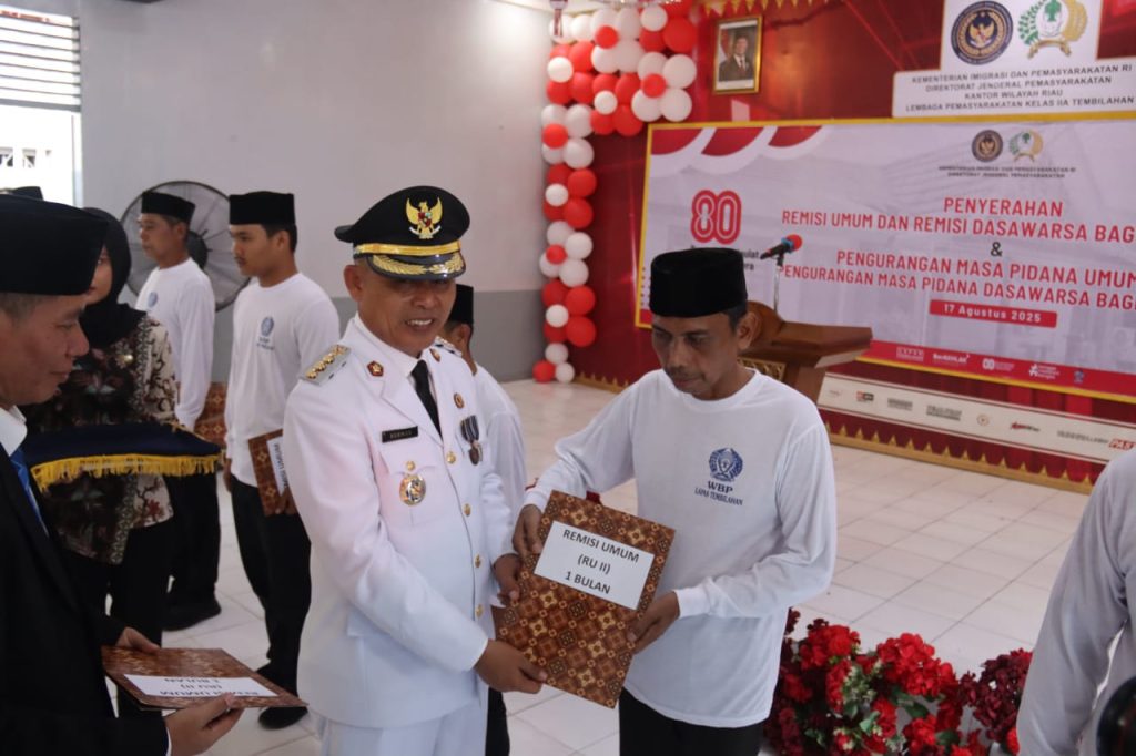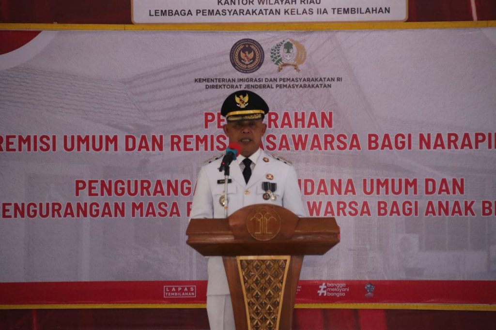 Acara pemberian remisi umum ini turut dihadiri Wakil Bupati Inhil, Ketua DPRD beserta unsur Forkopimda, Sekretaris Daerah, kepala OPD, pimpinan instansi vertikal, serta jajaran Lapas Kelas IIA Tembilahan. (Galeri Foto)