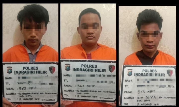 Sebanyak 3 tersangka masih berumur belasan tahun, inisial TZ (18), MK (16) dan RM (18) merupakan warga Tembilahan terancam dibui.
