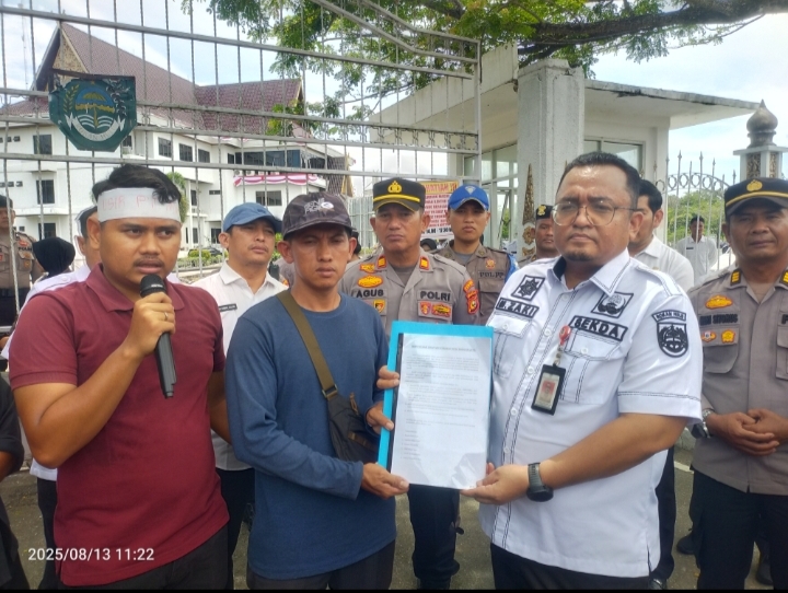 ARB INdonesia, Rokan Hulu – Ratusan warga Desa Bangun Jaya, Kecamatan Tambusai Utara, Kabupaten Rokan Hulu, Riau, menggelar aksi damai di depan Kantor Bupati Rokan Hulu pada Selasa (13/8/2025). Massa yang tergabung dalam aksi tersebut menyuarakan penolakan terhadap keberadaan PT. MAN yang dianggap hanya menimbulkan konflik sosial ditengah masyarakat serta tidak memberikan kontribusi bagi pembangunan desa dan kesejahteraan warga.