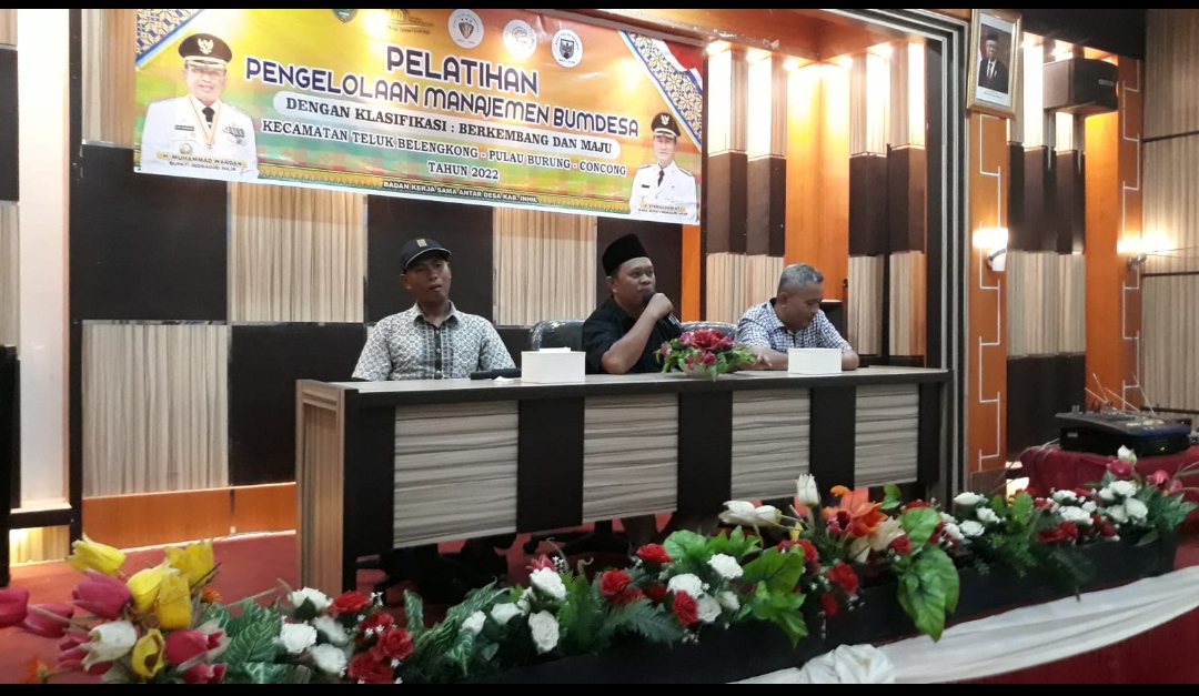 ARB INdonesia, INDRAGIRI HILIR – Melalui Badan Kerjasama Antar Desa yang terdiri dari Kecamatan Concong, Teluk Belengkong, dan Pulau Burung melaksanakan pelatihan Pengelolaan Manajemen Badan Usaha Milik Desa (BUMDes).