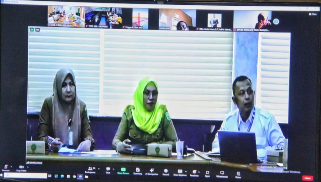 ARB INdonesia, INDRAGIRI HILIR – Pj. Ketua TP PKK kabupaten Inhil sekaligus wakil ketua Tim Percepatan Penurunan Stunting (TPPS) Kabupaten Inhil Hj. Katerina Susanti Herman dan Dinas Kesehatan dengan OPD lainnya menghadiri acara persiapan pelaksanaan kegiatan Sosialisasi Gerakan Pengukuran dan Intervensi Serentak Pencegahan Stunting Provinsi Riau melalui Zoom Meeting, Senin (10/6/2024) di Ruang Multimedia Diskomifo, komplek Kantor Bupati Inhil.