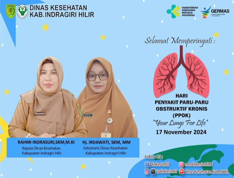 Dinas Kesehatan Indragiri Hilir mengajak seluruh masyarakat untuk lebih peduli terhadap faktor risiko, seperti merokok, polusi udara, dan infeksi saluran pernapasan yang sering terjadi pada anak-anak maupun orang dewasa.