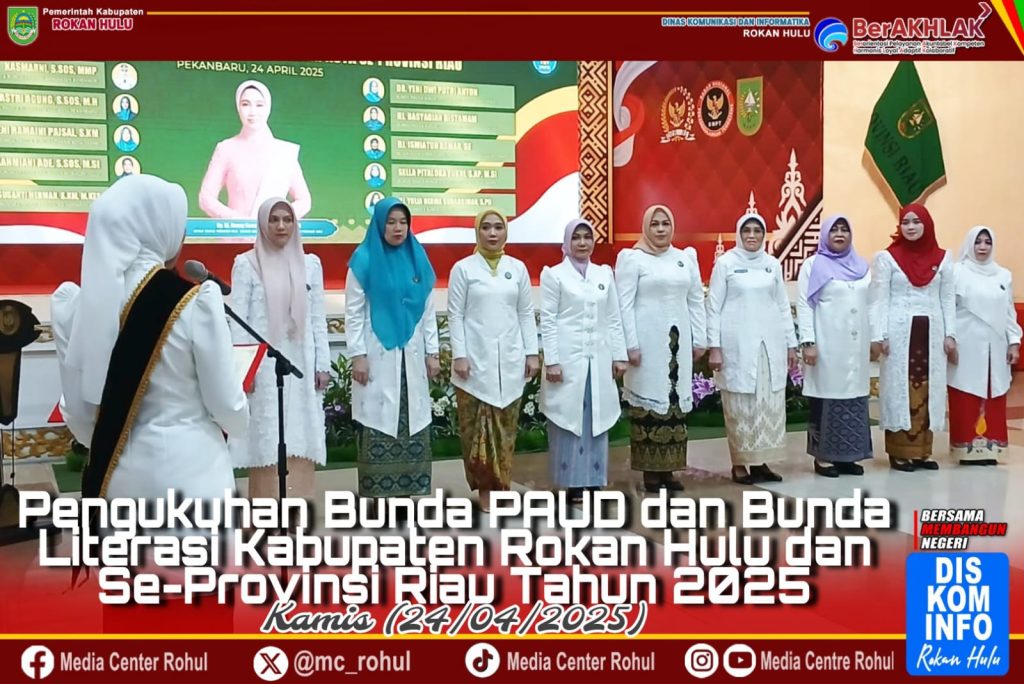 ARB INdonesia, ROKAN HULU – Acara Pengukuhan bunda paud dan bunda literasi Provinsi Riau dan pengukuhan bunda paud dan bunda literasi kabupaten kota se provinsi Riau masa Bhakti 2025-2030) dilaksanakan di Gedung Daerah Balai Serindit Pekanbaru, Riau pada Kamis (24/04/2025)