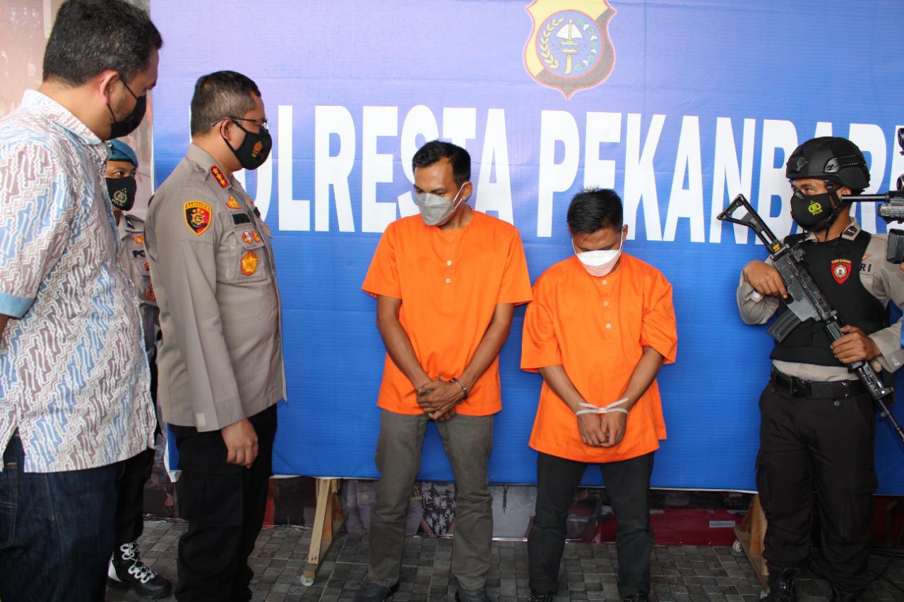 Kapolresta Pekanbaru Kombes Pol H. Nandang Mu’min Wijaya, S.I.K.,M.H memimpin langsung Konferensi Pers dan didampingi Kasat Reskrim Polresta Pekanbaru Kompol Juper Lumban Toruan, S.I.K.,S.H dan Kapolsek Bukit Raya AKP Arry Prasetyo, S.H.,M.H serta Kasubbag Humas Polresta Pekanbaru IPTU Said Khairul Iman, S.H.,M.H