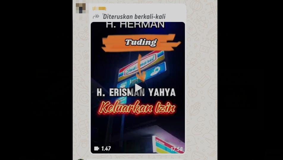 Ironisnya video pernyataan itu tampak sengaja dilakukan pengeditan dengan penggiringan opini dalam bentuk narasi seolah mantan Pj Bupati Inhil Herman telah menuding Pj Bupati Erisman Yahya telah mengeluarkan izin pendirian minimarket yang berlokasi di sungai beringin tembilahan Hilir.