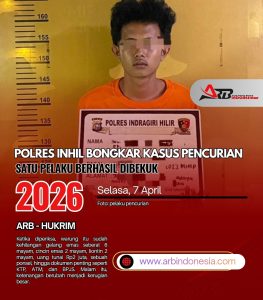 Polres Inhil Bongkar Kasus Pencurian, Satu Pelaku Berhasil Dibekuk