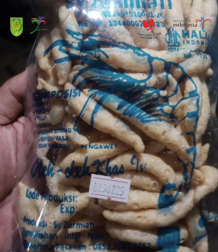 Kerupuk amplang udang adalah camilan khas Inhil yang terbuat dari bahan dasar udang dan tepung, memiliki rasa gurih dan renyah. Camilan ini sangat populer di kalangan wisatawan dan merupakan oleh-oleh yang wajib dibawa pulang.
