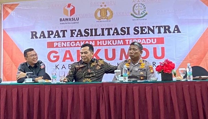 ARB INdonesia, KAMPAR – Badan Pengawas Pemilihan Umum (Bawaslu) Kabupaten Kampar melaksanakan Rapat Fasilitasi Sentra Penegakan Hukum Terpadu (Gakkumdu), Jumat (25/11/2022) di Labersa Grand Hotel.