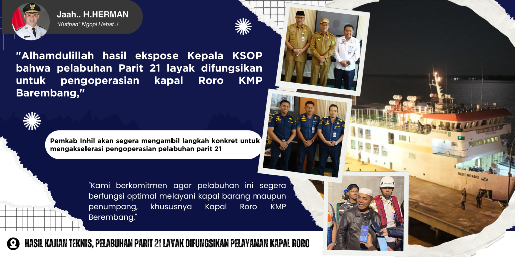 Hal tersebut disampaikan Bupati Indragiri Hilir (Inhil), Haji Herman, usai mendengar pemaparan hasil ekspose Kepala Kantor KSOP Kelas IV Tembilahan, Feriland Saragih, Selasa lalu, (17/06/2025).