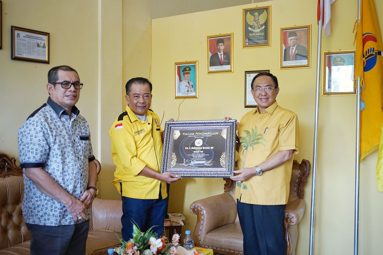 Piagam penghargaan tersebut diberikan kepada HM Wardan sebagai kepala daerah yang perduli terhadap perkembangan dan kemajuan pers di Inhil (PJI-D).