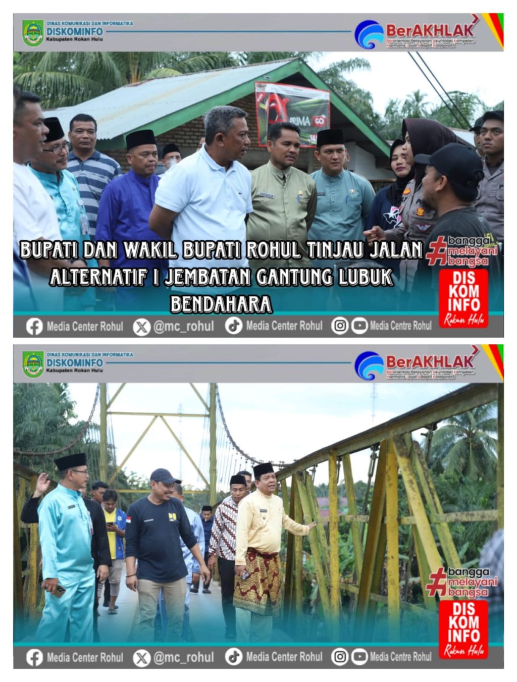 ARB INdonesia, ROKAN HULU – Bupati Rohul Anton, S.T MM dan Wakil Bupati Rohul H. Syafaruddin Poti, S.H, MM tinjau jalan alternatif I yang disiapkan selama perbaikan Jembatan Utama Sei-Rokan, Lubuk Bendahara Kecamatan Ujung Batu, Jum’at (02/05/2025).