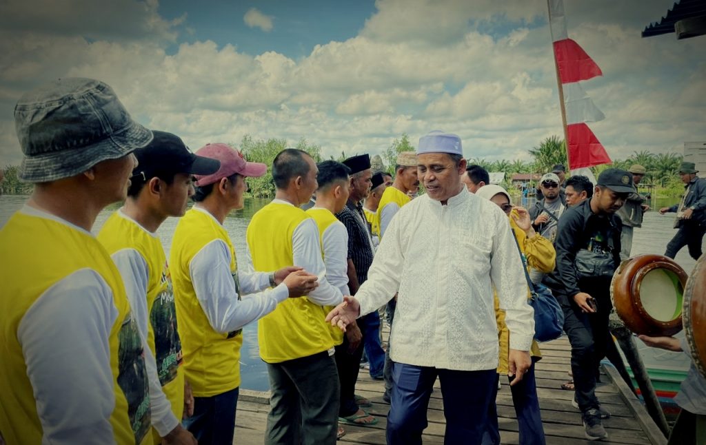 ARB INdonesia, INDRAGIRI HILIR – Tiba di pelabuhan pasar Desa Lubuk Kempas Kecamatan Pelangiran, Haji Herman disambut meriah puluhan Kader Partai Golongan Karya (Golkar).