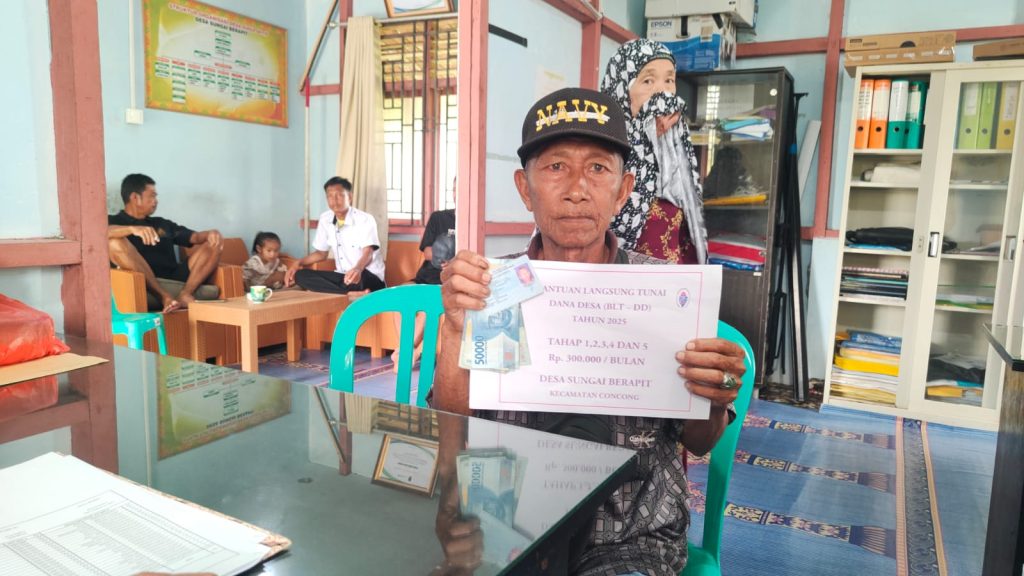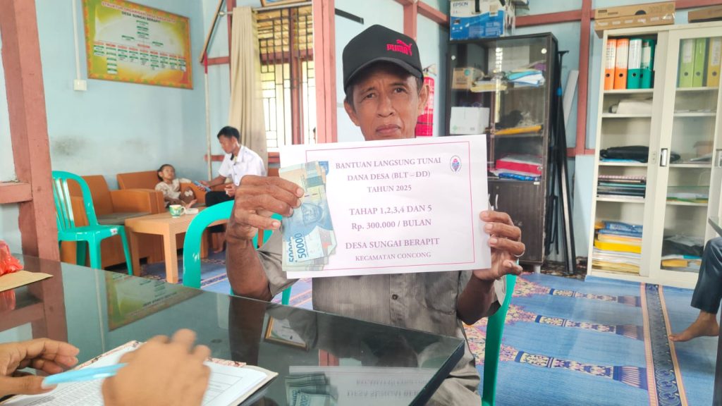 ARB INdonesia, INDRAGIRI HILIR – Pemerintah Desa Sungai Berapit kembali menunjukkan komitmennya dalam mendukung kesejahteraan masyarakat dengan menyalurkan Bantuan Langsung Tunai Dana Desa (BLT DD) untuk periode Januari hingga Mei 2025.