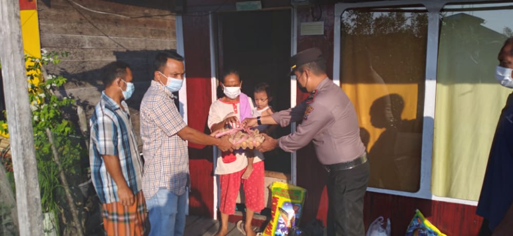 ARBIndonesia.com, INDRAGIRI HILIR – Anggota DPRD Kabupaten Indragiri Hilir (Inhil) Aswan, ST bersama Kapolsek Concong IPTU Heriman Putra, Sekdes Panglima Raja Rahman, S.Pd.I serta stake holder terkait menyerahkan bantuan sembako dan masker kepada keluarga pasien yang terkonfirmasi positif covid_19 di Desa Panglima Raja, Kecamatan Concong, Jumat (4/6/2021) sore.