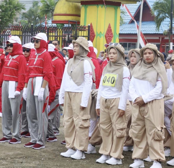 Kegiatan yang diikuti ratusan peserta tersebut dipusatkan di Lapangan Gajahmada Tembilahan, Sabtu, 10 Agustus 2024.