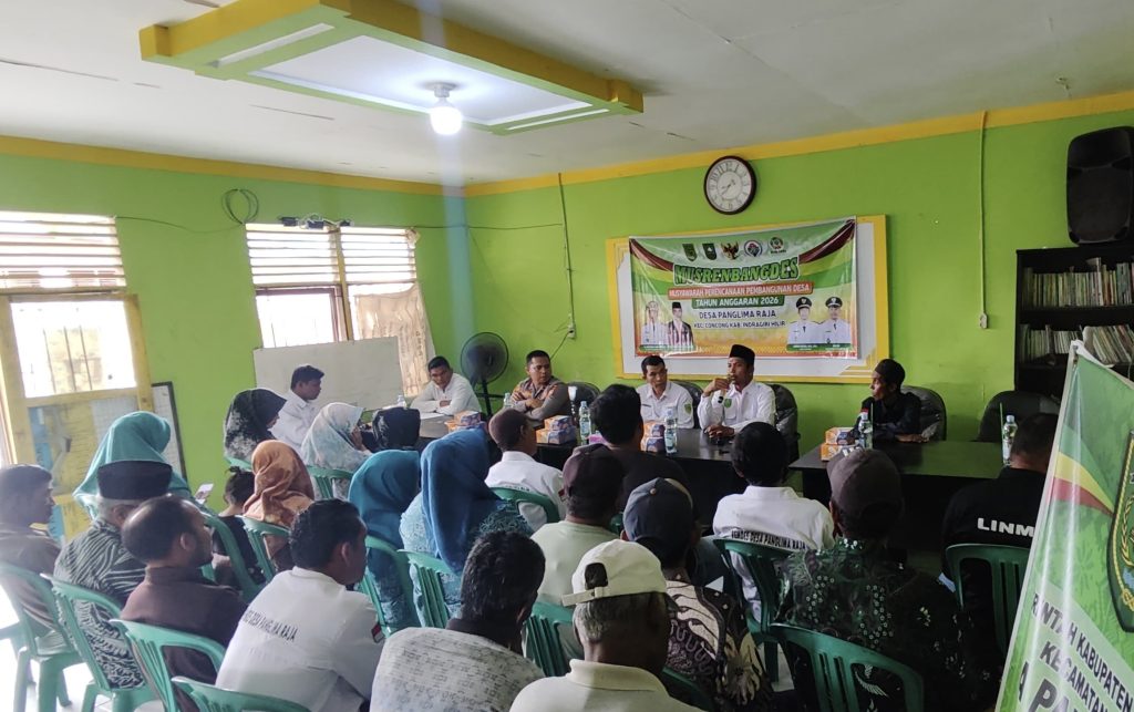 Kepala Desa Panglima Raja, Haliar dalam sambutannya menyampaikan bahwa Musrenbangdes ini merupakan kegiatan tahunan yang wajib kita laksanakan untuk menyerap aspirasi masyarakat desa guna kepentingan pembangunan di tahun 2026, yangmana usulan pembangunan dengan pembiayaannya di luar dari dana APBDes.