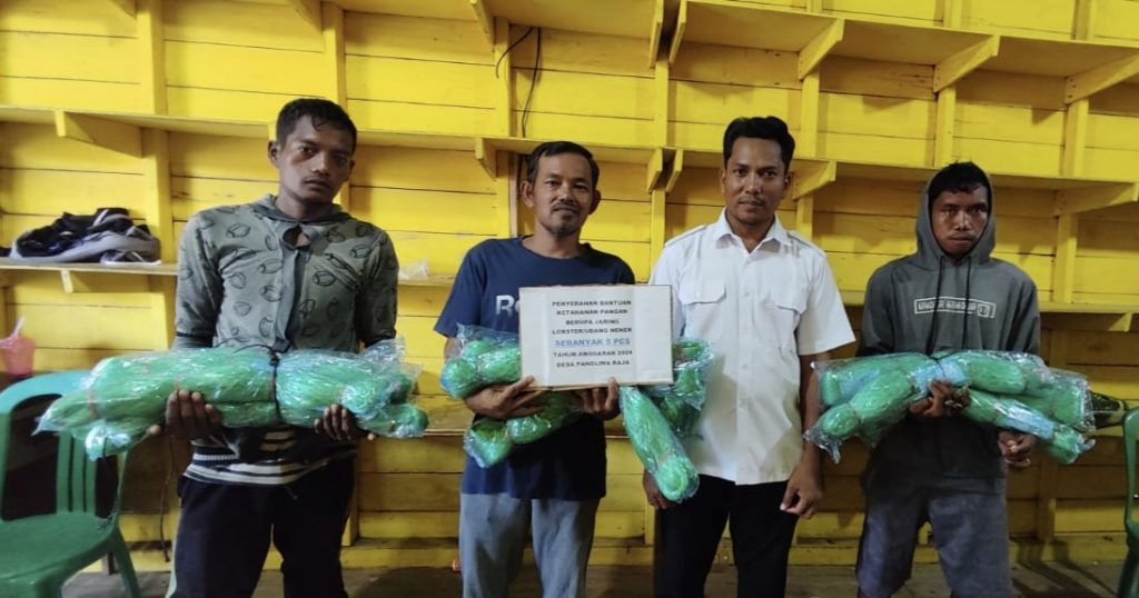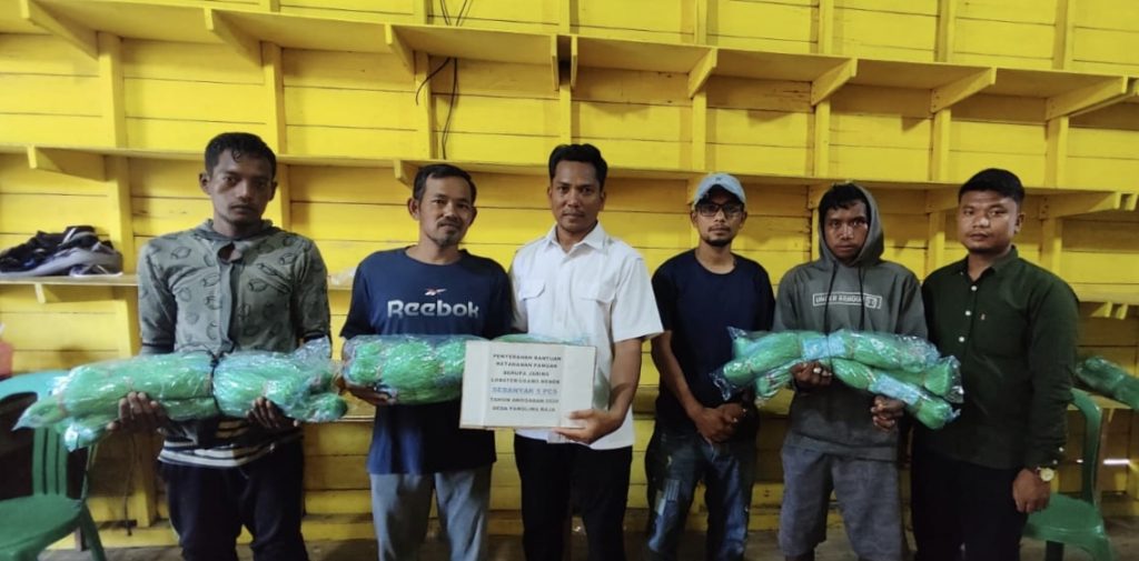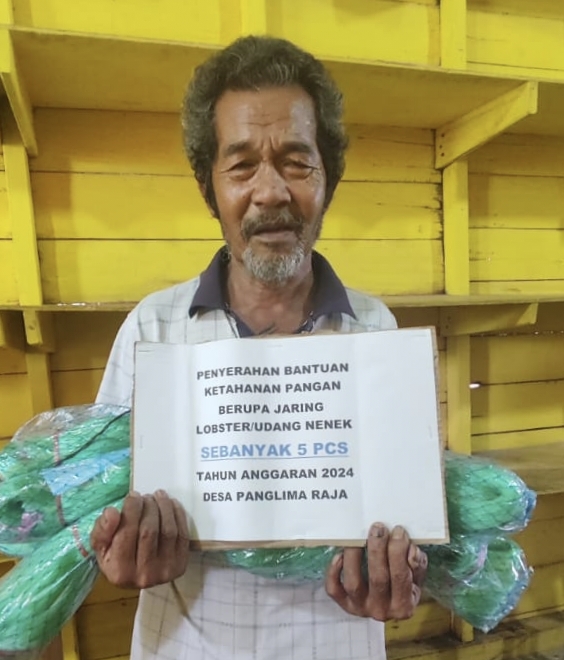 Adapun bantuan tersebut diberikan kepada 253 Keluarga Penerima Manfaat (KPM) berupa 5 pcs jaring lobster atau udang nenek per KPM dan diserahkan langsung oleh Kelapa Desa Panglima Raja, Haliar.