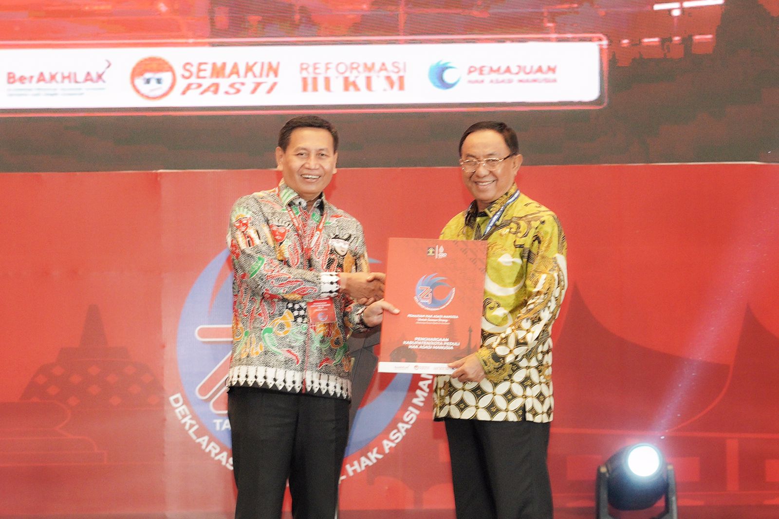 Mengangkat tema “Pemajuan Hak Asasi Manusia Untuk Setiap Orang Menuju Indonesia Maju”, peringatan Hari HAM ke-74 ini turut dihadiri oleh Wakil Presiden K.H. Ma’ruf Amin dan Menteri Hukum dan HAM RI Yasonna H Laloy serta Kepala Daerah diseluruh Indonesia, Senin (12/12/2022).