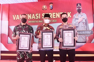 ARB INdonesia, PEKANBARU – Pemerintah Kabupaten Indragiri Hilir menerima penghargaan dari POLRI terbaik 1 dalam capaian vaksinasi untuk lansia Dosis 1, Kamis (24/3/2022) di Kampus Pasca Sarjana Universitas Riau Jl.Pattimura Pekanbaru.