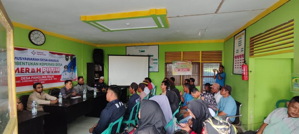 ARB INdonesia, INDRAGIRI HILIR– Pemerintah Desa Panglima Raja, Kecamatan Concong Kabupaten Indragiri Hilir (Inhil) sukses membentuk kepengurusan Koperasi Merah Putih sebagai langkah strategis untuk meningkatkan kesejahteraan ekonomi masyarakat, Kamis (22/5/2025).