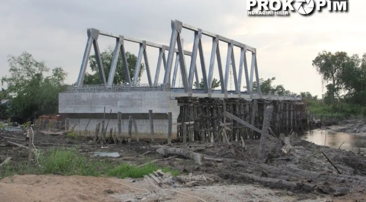 Pj Bupati Inhil, H Herman mengatakan pembangunan jembatan ini merupakan kegiatan provinsi yang dibangun pada tahun 2023 dan sedikit ada keterlambatan.