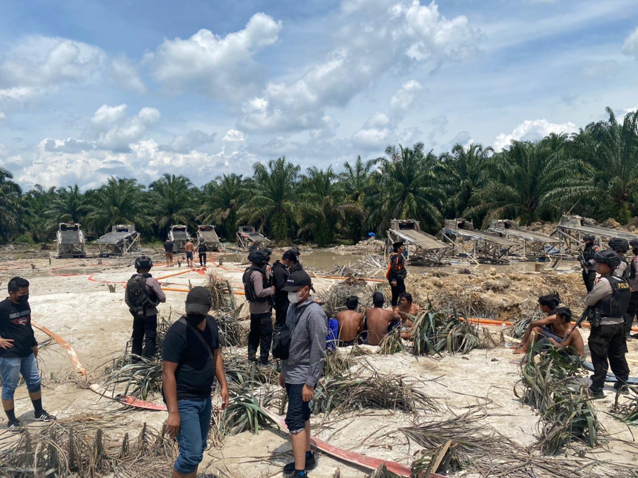ARBIndonesia.com, PEKANBARU – Polda Riau berhasil ‘menggulung’ 11 orang pelaku tindak pidana penambangan emas tanpa izin yang bertempat di Desa Marsawa, areal Perkebunan PT. Citra Plasma, Kecamatan Sentajo Raya, Kabupaten Kuansing pada Rabu (4/5/2021).