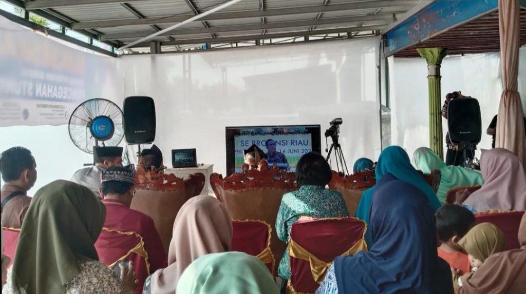 ARB INdonesia, INDRAGIRI HILIR – Pj. Ketua Tim Penggerak PKK Inhil sekaligus Wakil Ketua Tim Percepatan Penurunan Stunting (TPPS) Kabupaten Inhil Hj. Katerina Susanti Herman dan Kepala Dinas Kesehatan Inhil menghadiri Pencanangan Gerakan Intervensi Serentak Pencegahan Stunting melalui Zoom Meeting, Kamis (13/6/2024) di Posyandu Mangga Jl. H. Abdul Gani Tembilahan.