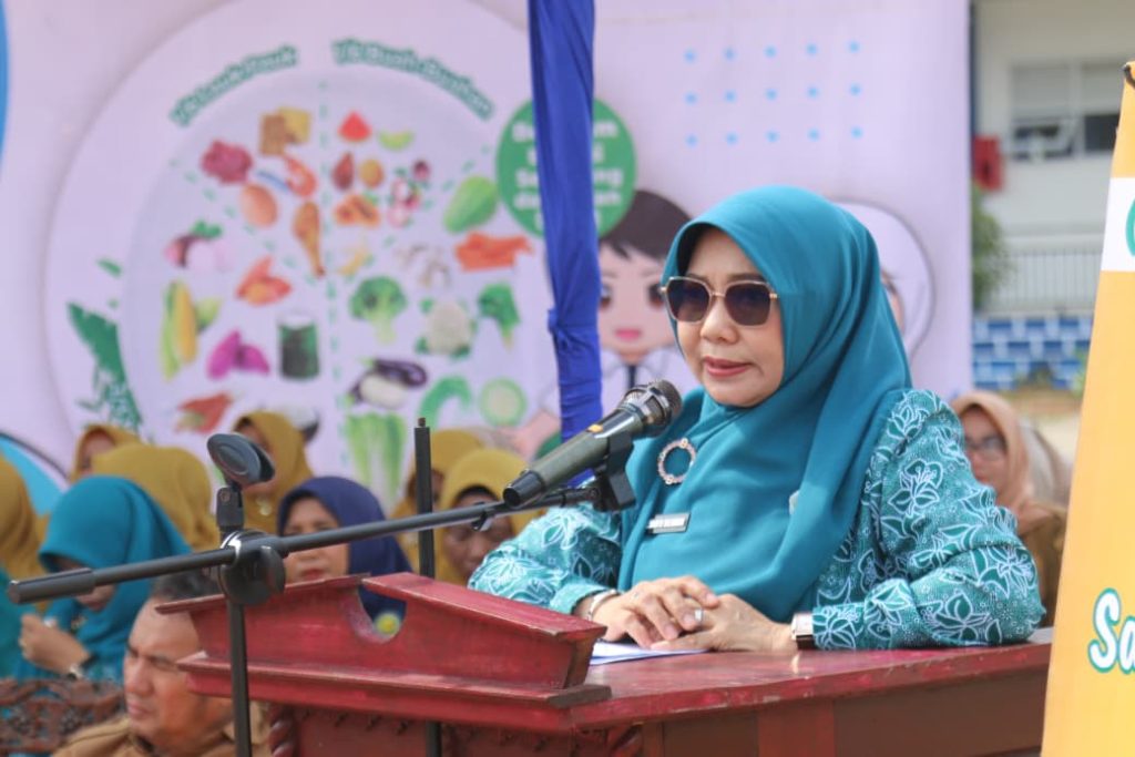 ARB INdonesia, INDRAGIRI HILIR – Kampanye makanan sehat melalui program Beragam, Bergizi ,Seimbang dan Aman atau B2SA Goes To School terus dilakukan Ketua Tim Penggerak Pemberdayaan dan Kesejahteraan Keluarga (TP. PKK) Indragiri Hilir (Inhil) Katerina Susanti Herman bersama perangkat daerah terkait.
