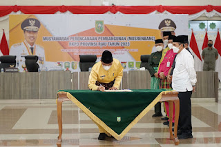 Musrenbang RKPD Tahun 2023 Provinsi Riau yang dibuka lansung Gubernur Riau Drs Syamsuar, M.Si yang dihadiri Bupati HM.Wardan didampingi Kepala Bappeda Inhil.