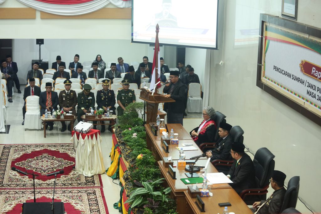 Ketua DPRD Inhil terpilih dalam sambutannya mengatakab sumpah janji yang telah dilaksanakan amanah merupakan kepercayaan yang diberikan.