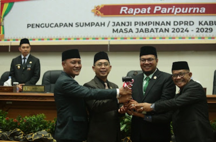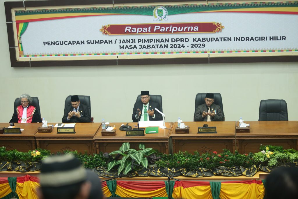 ARB INdonesia, INDRAGIRI HILIR – Anggota Dewan Perwakilan Rakyat Daerah (DPRD) Kabupaten Indragiri Hilir (Inhil) menggelar rapat paripurna dengan Agenda Pengucapan Sumpah/Janji Pimpinan DPRD Inhil Masa Jabatan 2024-2029, Rabu (16/10/2024). di Gedung DPRD Inhil Jalan Soebrantas Tembilahan.
