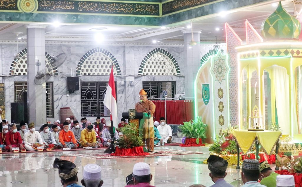 ARBIndonesia.com, INDRAGIRI HILIR – Musabaqoh Tilawatil Qur’an (MTQ) ke-51 2021 tingkat Kabupaten Indragiri Hilir (Inhil) Provinsi Riau secara resmi ditutup Bupati Inhil yang diwakili oleh sekretaris daerah (Sekda) Inhil Drs Afrizal di Masjid Agung Al-Huda jalan Jendral Sudirman, kecamatan Tembilahan, dengan menerapkan protokol kesehatan.