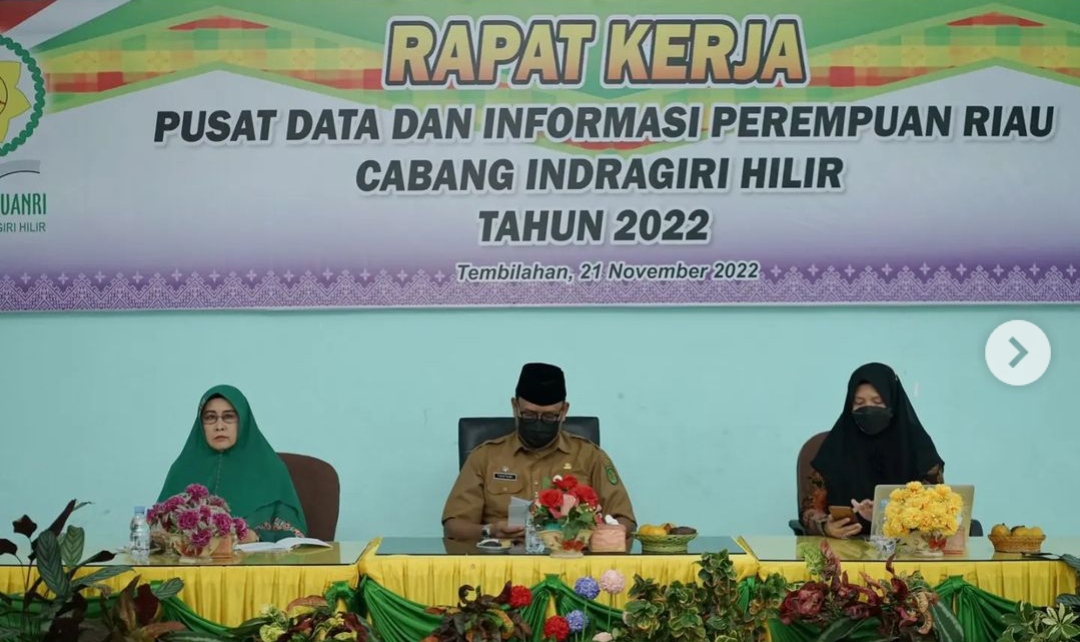 ARB INdonesia, INDRAGIRI HILIR – Bupati Indragiri Hilir yang diwakili oleh Asisten Pemerintahan dan Kesra Setdakab Inhil H. Tantawi Jauhari membuka Rapat Kerja Pusat Data dan Informasi Perempuan Riau Cabang Indragiri Hilir Tahun 2022 di Aula Gedung Wanita Jl. Sungai Beringin Tembilahan, Senin (21/11/2022) pagi.