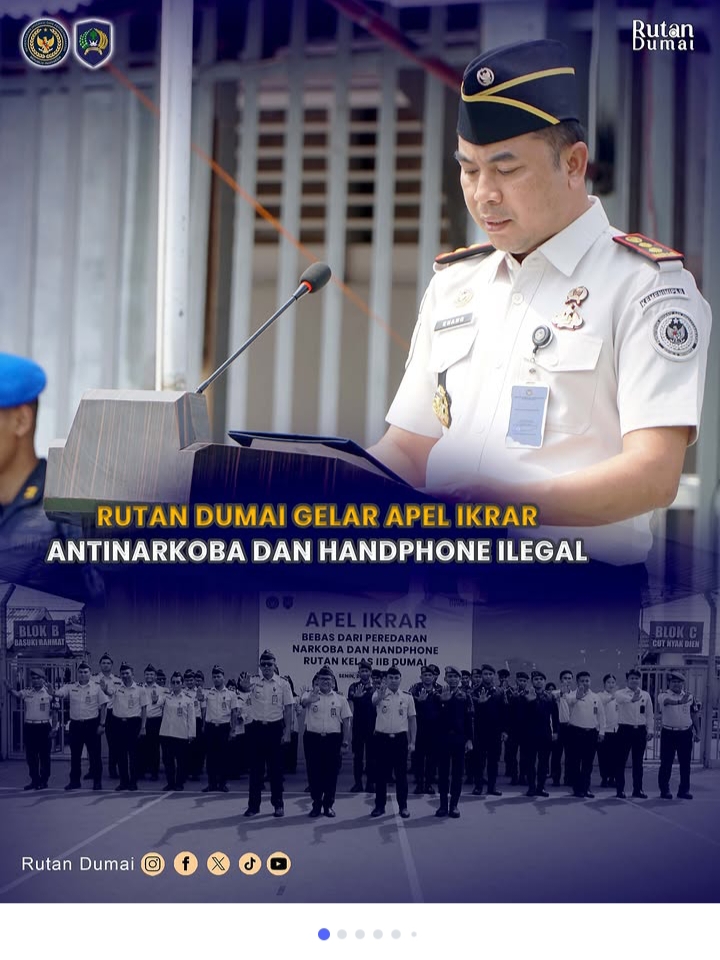 Karutan Dumai, Enang Iskandi dalam amanatnya menegaskan komitmen ini tidak hanya seremonial, tetapi harus diwujudkan melalui tindakan nyata. Ia menekankan integritas petugas menjadi kunci utama dalam menciptakan lingkungan pemasyarakatan yang bersih, aman, dan terbebas dari gangguan keamanan.