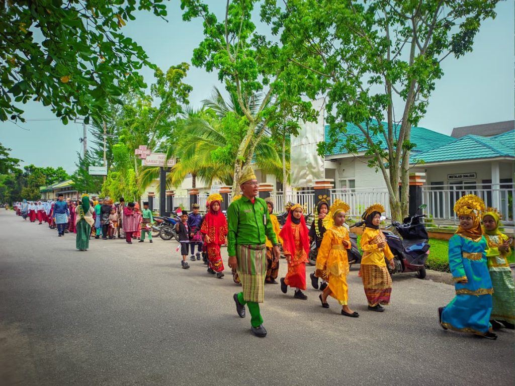 Keramian tidak berhenti di lapangan upacara. Selesai upacara, para siswa yang telah mengenakan beragam pakaian adat dan atribut merah-putih langsung berbaris rapi untuk mengikuti Pawai Jalan di sekitar lingkungan sekolah. Dengan penuh antusias, siswa-siswa membawa poster dan bendera kecil, menyuarakan semangat Sumpah Pemuda kepada masyarakat sekitar.